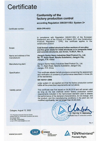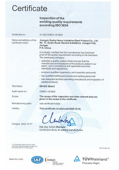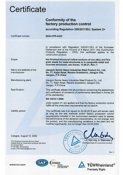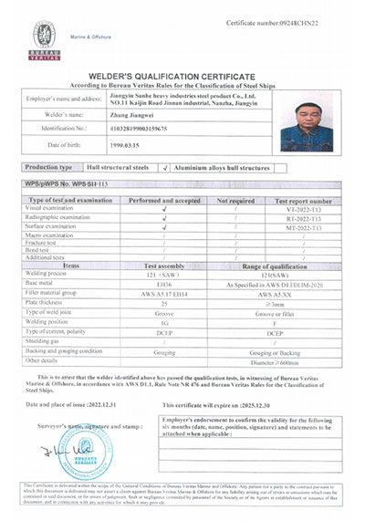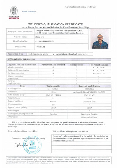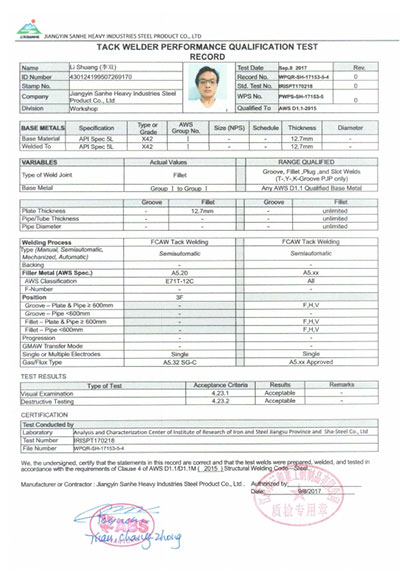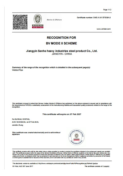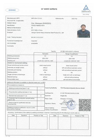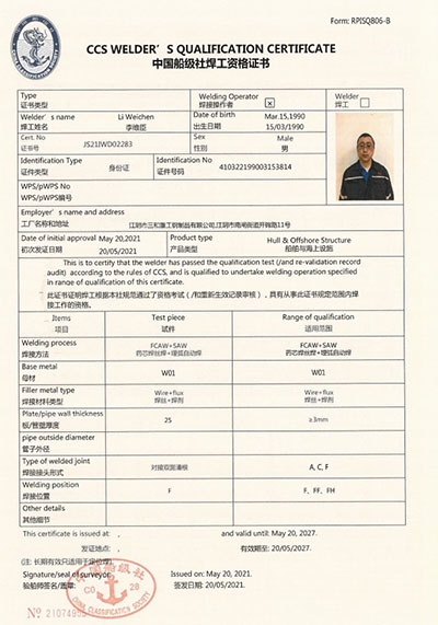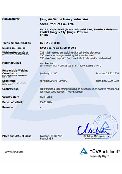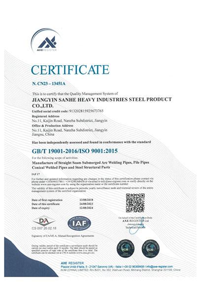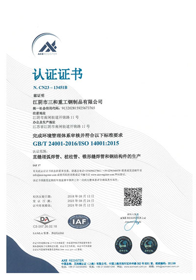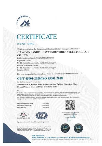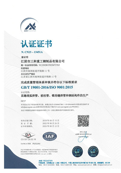 江陰市三和重工鋼制品有限公司成立于2012年3月,總投資1.2億,坐落于江蘇省江陰市南閘錦南工業區,占地4萬平方米,廠房面積3萬平方米。專業從事大口徑厚壁直縫埋弧焊接(LSAW)鋼管、方管、錐管,RBE卷制埋弧焊接鋼管的研發、生產和銷售。公司憑借著嚴謹的產品質量管理,先后通過了ISO三體系認證,RS、BV等船社級工廠認證,同時取得了CE CPR,API2B等歐美地區資質認證。公司擁有一條完整的,可以生產單支長度達到12米的JCO直縫埋弧焊鋼管生產線(品牌:美國林肯) ,3套卷管生產線以及異型管生產線。公司主要產品有各種大小厚壁直縫埋弧焊管、卷管、方管、矩形管、錐管、多邊形管等,主要以厚壁管為主。可按國家標準GB9711 、GB50250 系列 ,國際標準API? SPEC 2B及EN10210、EN10219、EN10208、 A671、A672等生產各種規格鋼管,年綜合產能達20萬噸,產品廣泛應用于海上 石油鉆井平臺、輸煤漿、輸水、特高壓輸電鐵塔電,石油化工、高層建筑鋼結構建筑工程、大型海洋碼頭樁管等領域。公司擁有一支由我國制管行業領先的技術團隊,并與國內制管技術與工藝方面的專家、科研院所建立了密切的合作關系, 研發能力處于國內先進水平,專門生產厚壁鋼管。為擴大產能,滿足對客戶長直管的需求,2023年11月30日,在靖江:江陰-靖江工業園區成立了三和重工的全資子公司:江陰市永祥鋼制品有限公司,可以對接環焊總長超過三十米的焊接鋼管及各類型鋼結構產品。江陰市三和重工鋼制品有限公司扎根于江陰,放眼于全球,通過持續的產業規模擴張和技術提升,立志成為大直縫埋弧焊管行業具有國際影響力的企業。